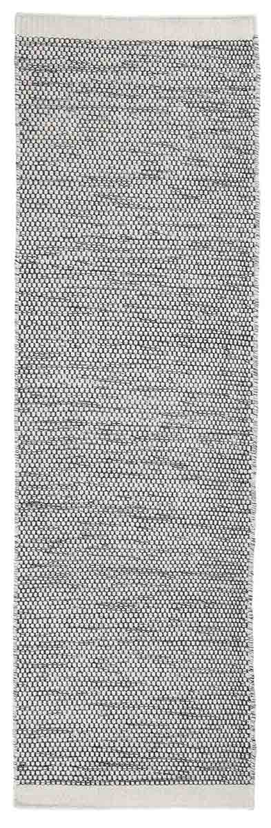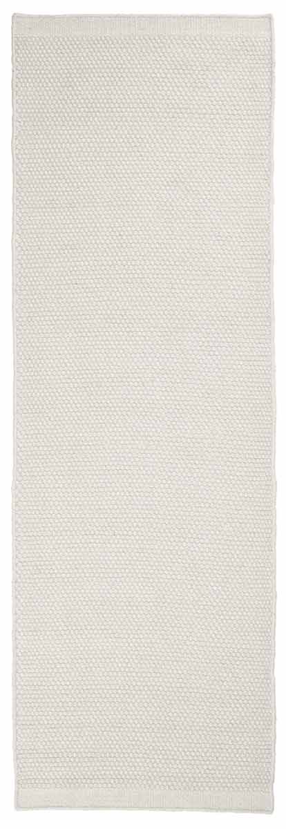 The natural charm of Asko rug, by Linie Design, makes spaces more welcoming. Its mottled look is created by the chromatic contrast between the wool weft and the organic cotton warp. Above all, the palette accentuates the difference in titling between the vertical and horizontal threads, tightly woven together. The result is a dense, robust weave textured with small, raised granules.