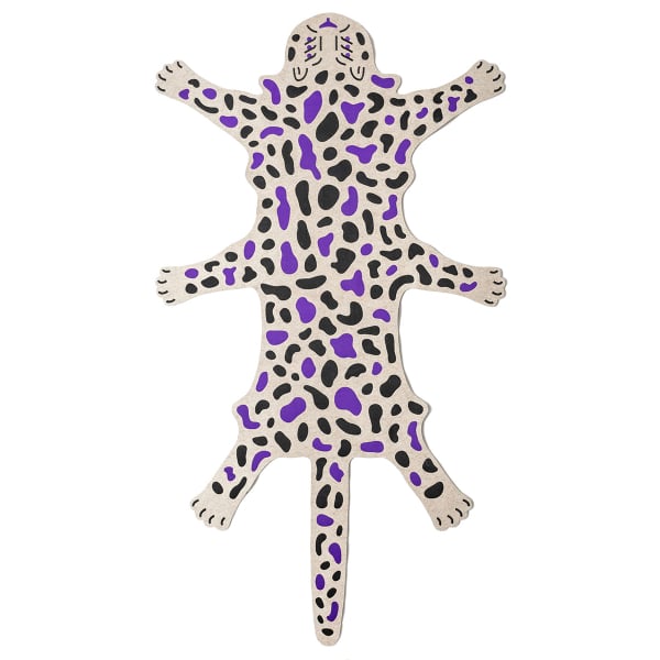 Tiger is a stylized animal print rug, designed by Budko. The graphic silhouette of a reclining tiger evokes an iconic representation. Irregularly scattered on a neutral background, abstract spots run through the feline's body. The whole gives off a playful note, between naive illustration and traditional figures. This wool model combines softness to the touch and natural robustness.