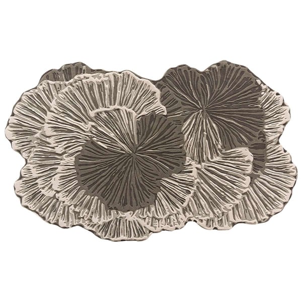 An abstract floral pattern runs through the Botanica Big rug published by Gan Rugs. The design unfolds chiseled radial lines, inspired by the irregular and ribbed shapes of mushrooms. Made of wool and tufted by hand, this decor features a textured relief that accentuates the impression of volume and movement. Each outline evokes the vegetal delicacy of a stylized nature.