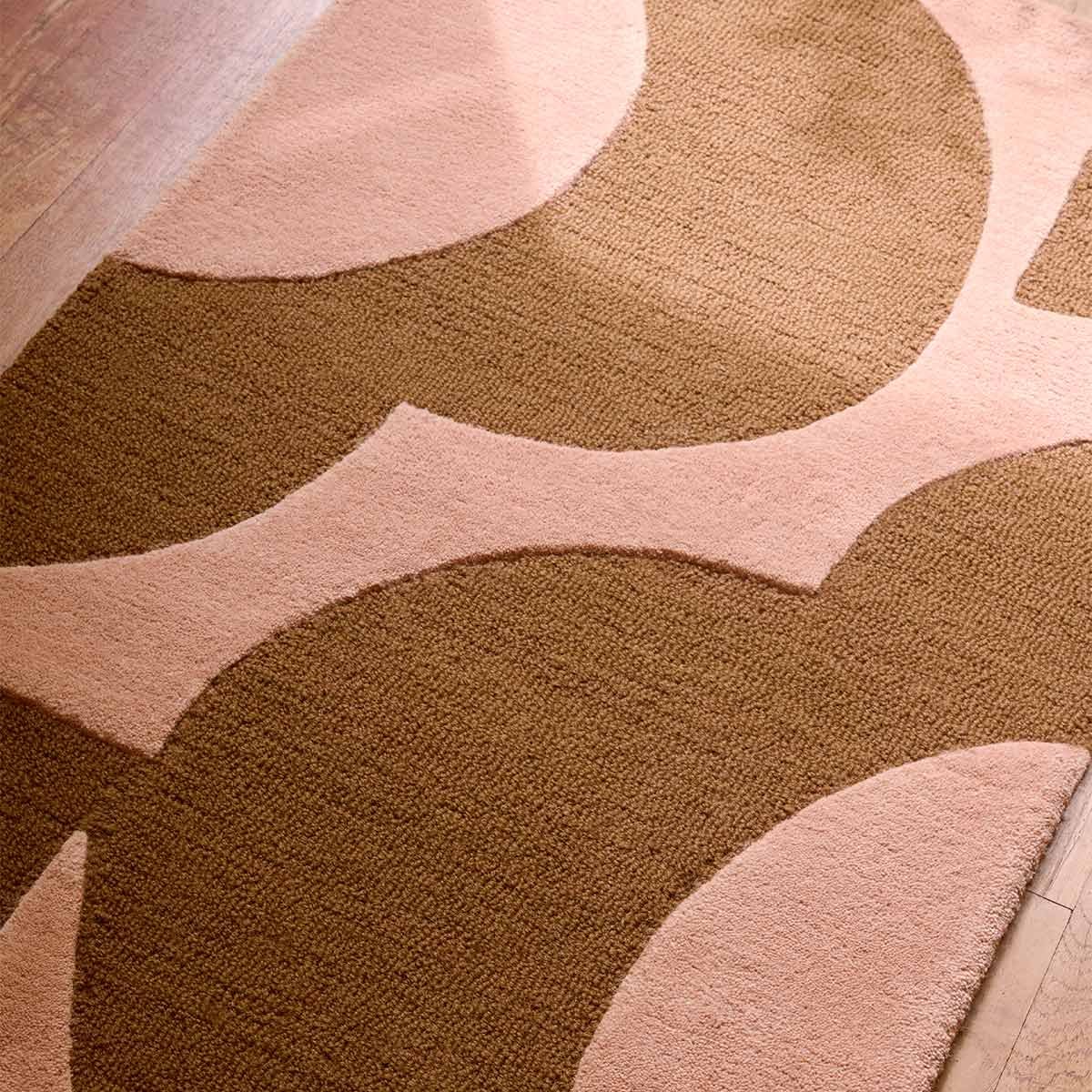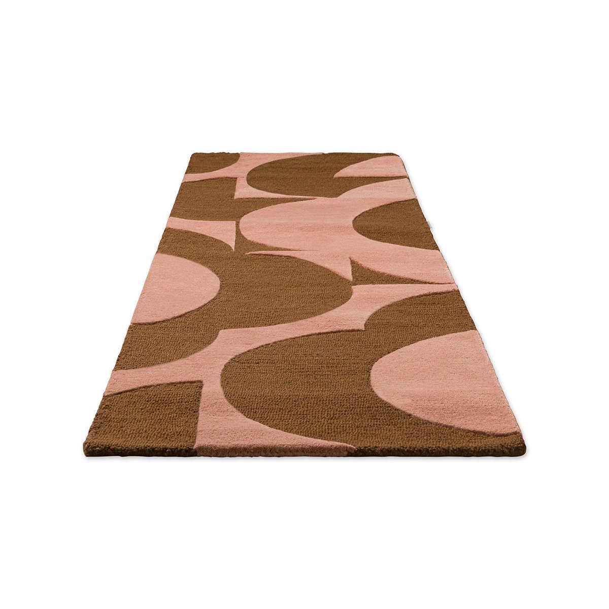 Flower Placement is a hallway rug with a minimalist and graphic floral pattern. On a plain background with natural tones, a large stylized flower is inscribed at one end. The deliberately naive design evokes retro design. Made of wool and tufted by hand, this decoration by Orla Kiely establishes a sculptural visual presence.