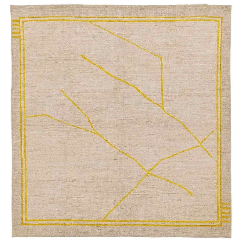 The Gemini rug draws a labyrinth of angular lines that run across the surface like frozen lightning. The graphic, irregular and intuitive pattern evokes a freehand sketch. A double frame structures the composition and accentuates its abstract character. Hand-knotted in wool, the model reveals the finesse of the gesture in a controlled contrast.