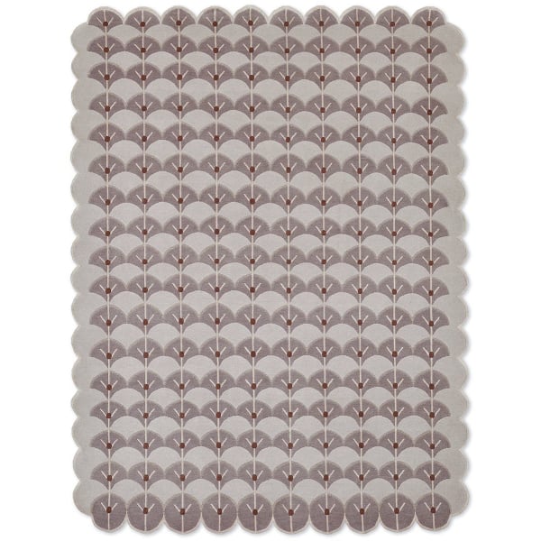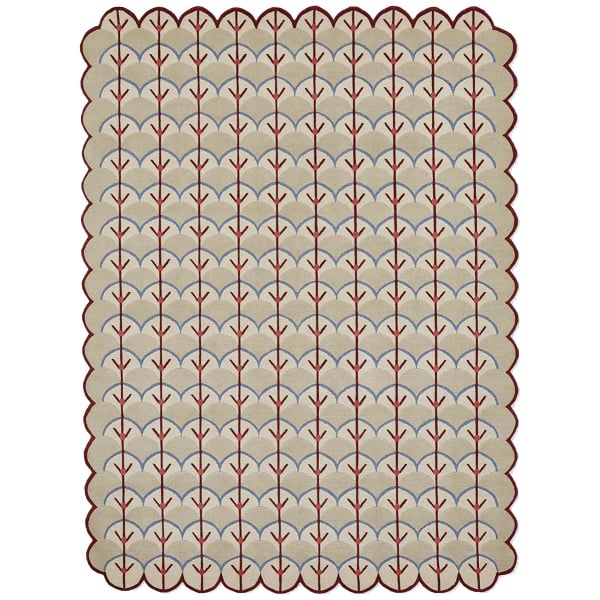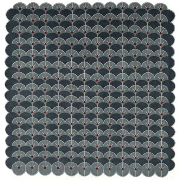 Published by Floor Story, the Marmalade rug unfolds a repetitive geometric pattern that evokes stylized fans. Each unit consists of a shape crossed by a central axis, punctuated by small luminous accents. Made of natural wool, this decor comes to life through the traditional knotting technique. The graphic structure exudes a refined and vibrant presence.