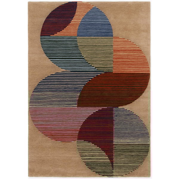 The Halftones Tufted rug, edited by Floor Story, reveals a rhythmic composition of segmented circles. Each sphere, divided in two by contrasting horizontal stripes, creates a structured graphic game. This hand-tufted wool decor reveals a dense, deep material with a rigorous construction. The whole evokes a contemporary aesthetic crossed with a retro touch.