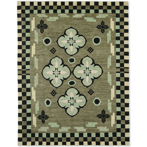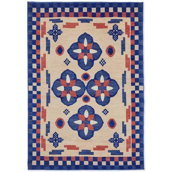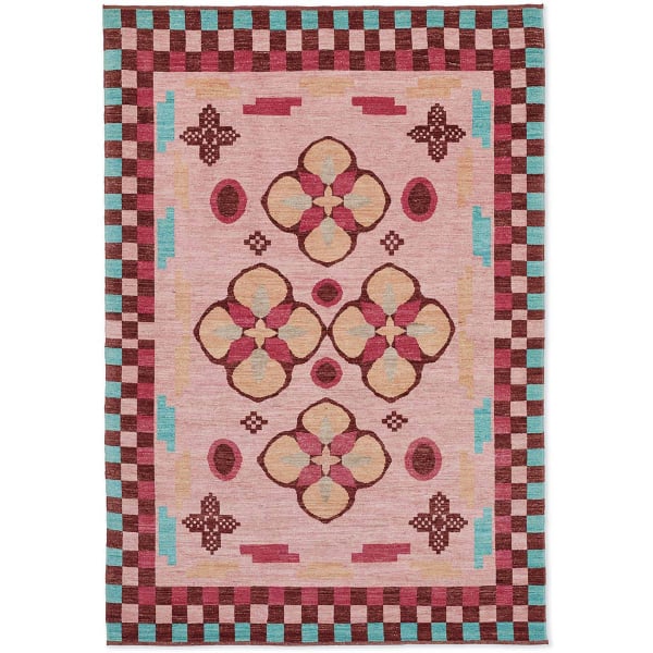 The Bud rug features a stylized floral composition in the shape of buds, mixed with delicate geometric elements. This hand-knotted decoration is made of pure Ghazni wool, renowned for its quality. Designed according to an artisanal tradition, it reveals a living design inspired by revisited classic motifs. The whole forms a rhythmic frame, full of vitality and refinement.
