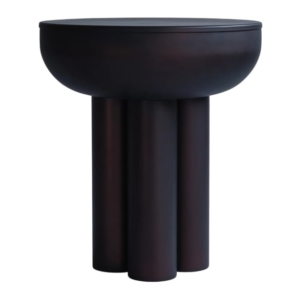 Crown Tall Metal asserts a raw and architectural silhouette. This side table rests on cylindrical, solid and spaced legs, which support a circular top with a sculptural shape. Its great height accentuates its monumental appearance and reinforces the impact of its vertical lines. Aluminum, both robust and lightweight, ensures stability and durability.