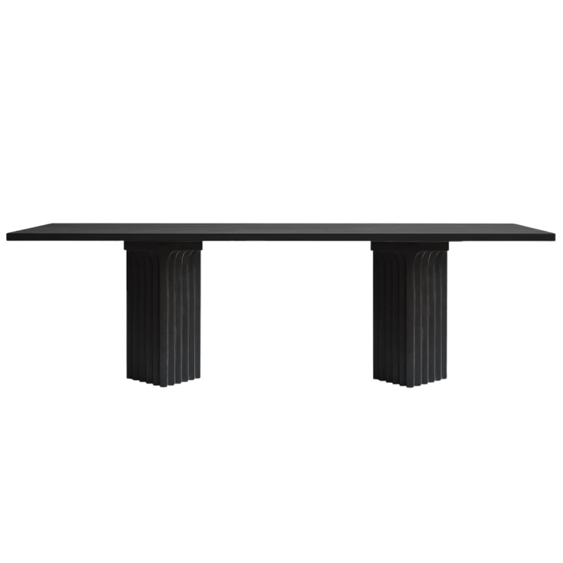 A style that is both minimalist and sculptural makes up the Arc dining table, edited by 101 Copenhagen. The solid oak top is distinguished by its durability, natural stability and rich veining. This structure rests on fluted legs reminiscent of classical architecture. The piece embodies a formal approach to furniture, between balance and expression.