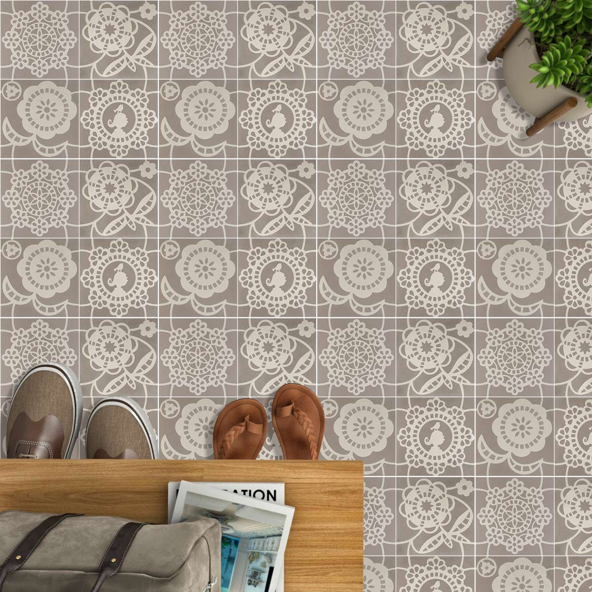 Bring a touch of romance to your living space with the Pip cement tile. Its design by Pip Studio features a bird perched on the head of a character. These two, drawn in a circular and flowery frame, form a warm illustration. Curvilinear patterns found on the Lilly, Daisy and Primrose tiles complement these elements and allow for different combinations.