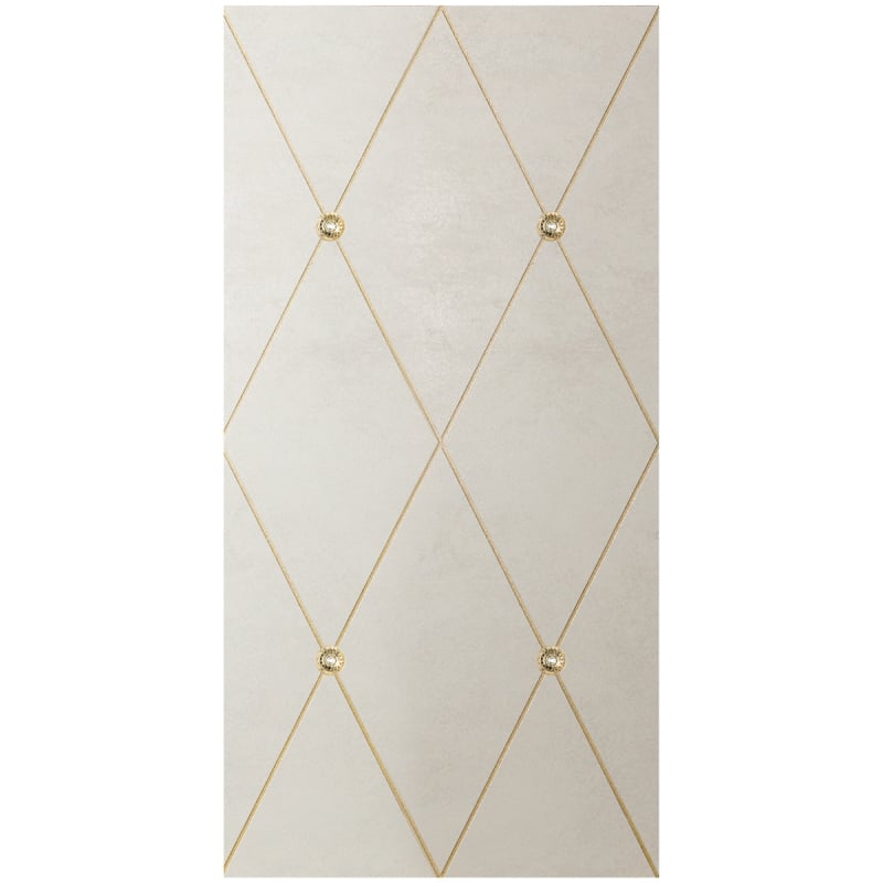 The Rhombus ceramic tile develops in a palette of neutral hues. Adorned with meticulous metallic details and a charming crisscross pattern, this elegant composition is made in an impressive size. This handcrafted satin finish slab will match with sophisticated decoration projects.