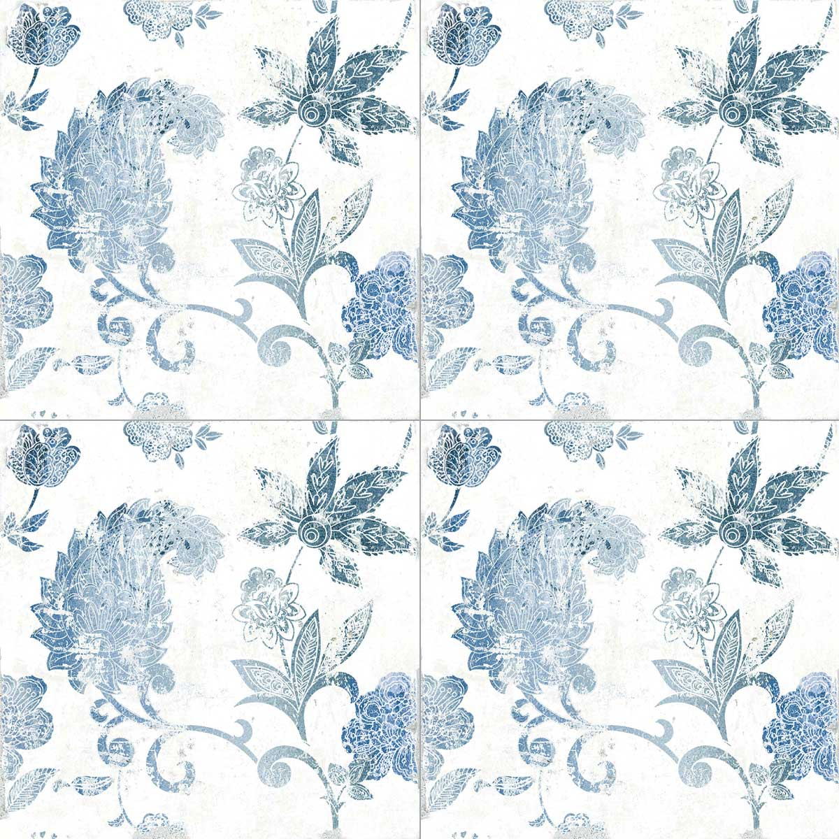 The Celeste porcelain stoneware tile is illustrated with a delicate floral pattern. In Mediterranean hues, this slab has a lovely patina effect. Made in Spain, this tile with a yesteryear charm will inspire a note both poetic and fresh.