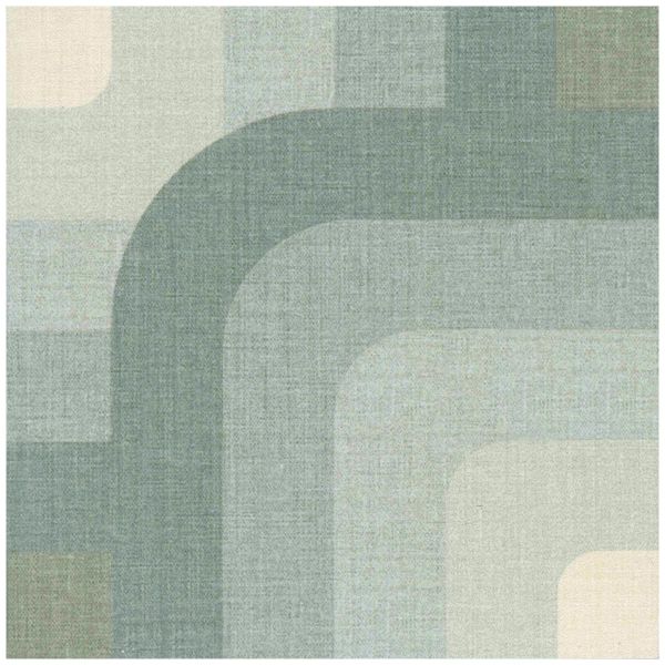 Available in several soft color palettes, it dresses spaces with a captivating retro touch. The assembly of these tiles with a slightly textured appearance composes dynamic rounded geometric shapes.