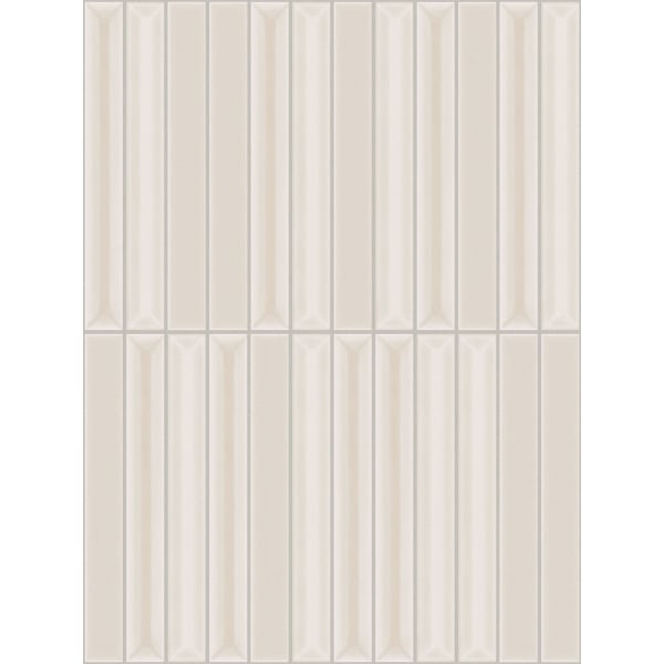 Mosaic Flautini is an enamelled porcelain stoneware tile with a geometric relief pattern. The design plays on the effects of shadow and light to create a subtle depth. The rectangular format accentuates the horizontal rhythm and refines the structured appearance. Ceramica Vogue offers a graphic and architectural decor.