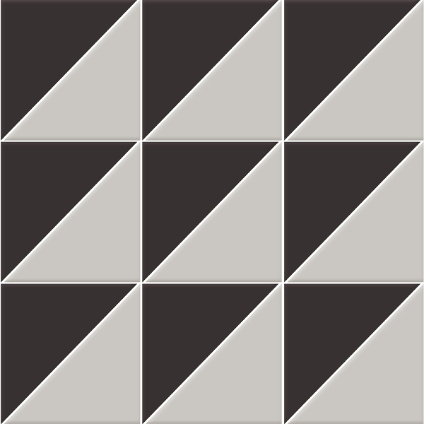 Mosaic Decor 1 matt is a tile with a geometric pattern, designed by Ceramica Vogue. Two triangles come together in a balanced composition and form a soft contrast in a single square. The clean contours emphasize the rigor of the layout, while the matte finish discreetly tempers the whole. Made of glazed porcelain stoneware, this model is part of a mastered graphic aesthetic.