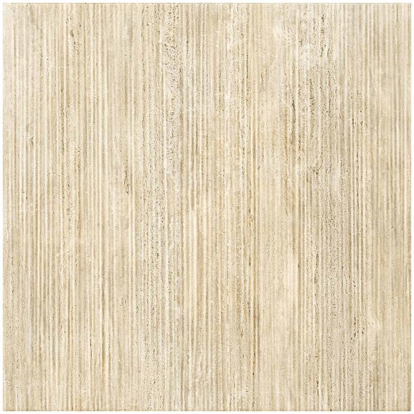 Uneven lines run across the surface of the Senzatempo square porcelain stoneware, creating a textured graphic pattern. The subtle relief evokes the patina of worn wood, with a deliberately imperfect appearance. This Fioranese tile features a set of faded streaks that give the material an organic depth. The contrast between linear rigor and natural irregularity creates a sober vibration.