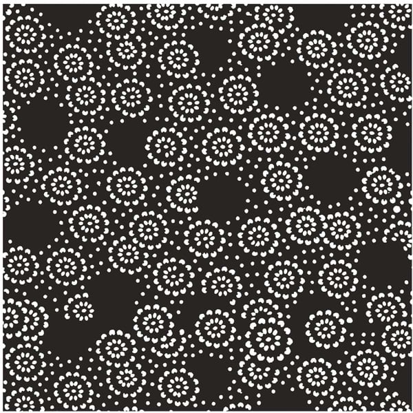 Japan Black porcelain stoneware is a tile decorated with a graphic floral pattern inspired by Japanese art. The design shows dots arranged in concentric spirals. Each flower, composed of small circles, forms petals evenly distributed on a dark background. This visual rigor echoes a meditative aesthetic, where every detail seems carefully thought out by Fioranese.