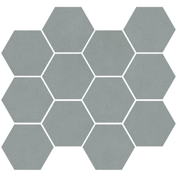 The Alchimia Esagoni Mosaic tile features a hexagonal pattern with clean, regular contours. It evokes a mineral texture, inspired by a cement aesthetic, and is covered with patinated details. The arrangement of shapes creates a coherent geometric dynamic, enhanced by nuanced depth. Designed by Fioranese, this tile presents a discreet appearance with authentic charm.