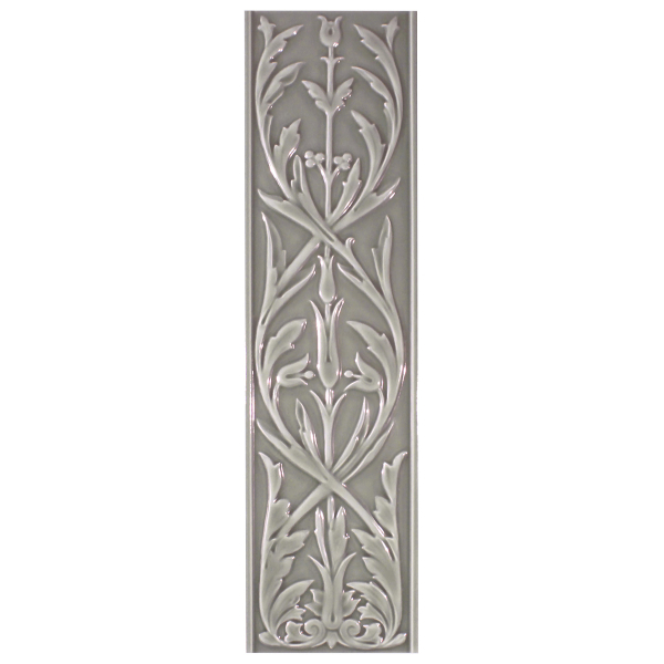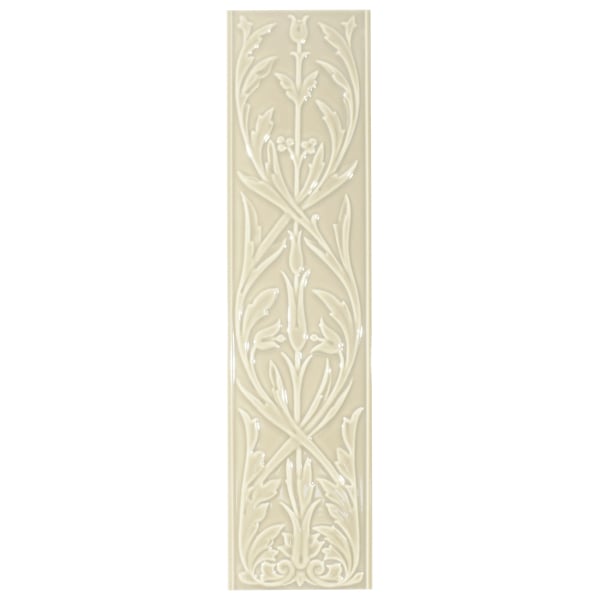 Designed by Ceramiche Grazia, the Hermitage porcelain stoneware features a neo-Gothic floral interlacing pattern. The motif, both geometric and organic, depicts serpentine stems punctuated by slender flowers. The overall effect is a delicate, almost sculpted fresco. Made of porcelain stoneware, this base reveals a dense material with a subtly modeled surface.
