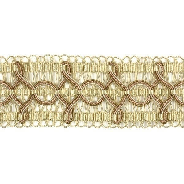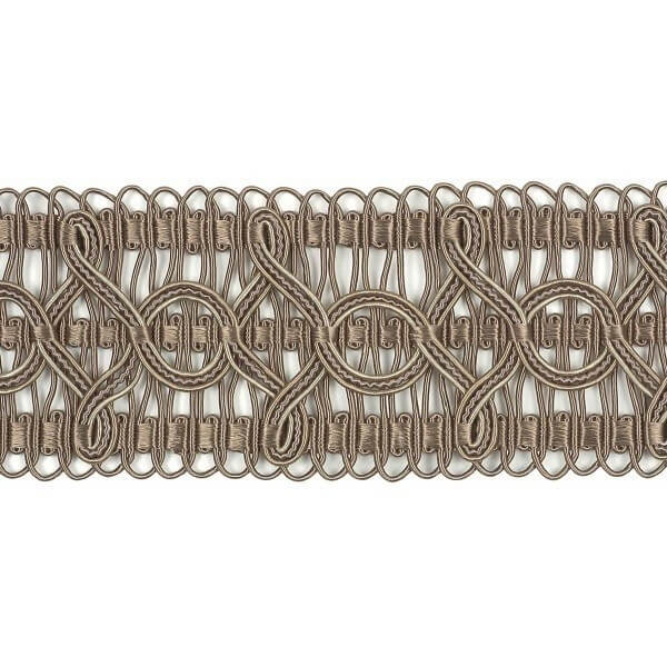 Une grande préciosité émane de ce somptueux galon guipé Houlès. Composé d'un mélange sophistiqué de fils de coton et de viscose, il est proposé dans une palette de couleurs classiques.