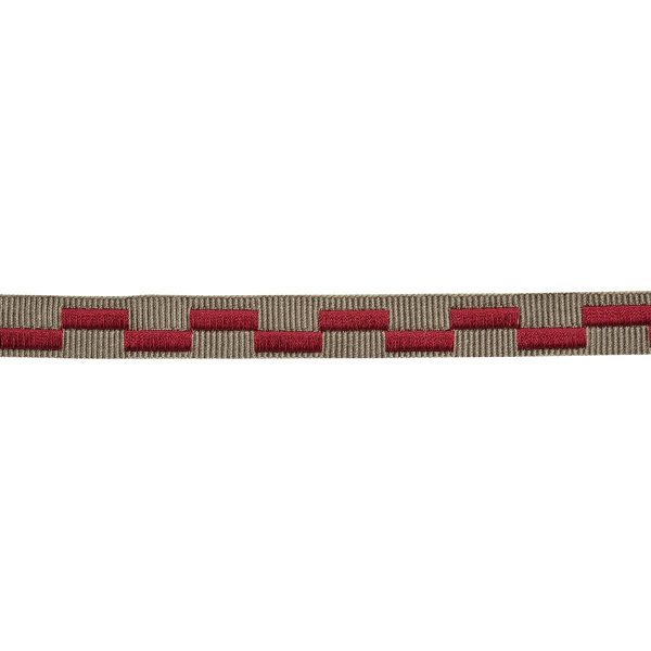 The Gallery embroidered braid is a blend of refinement and simplicity designed by Houlès. Its motif features embroidered rectangles on a contrasting semi-plain background. According to the declinations, the geometries are light and the support darker; or the opposite. This model is embellished with iridescent reflections to be able to decorate your creations with elegance.