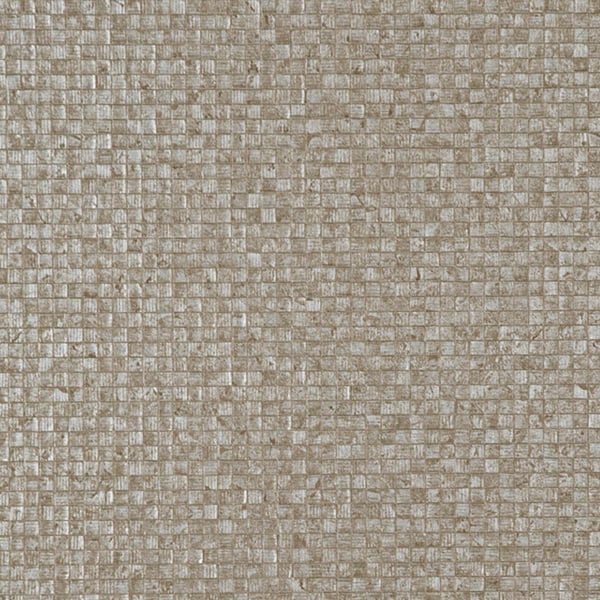This vinyl wall covering designed by Arte features a pattern of small irregular embossed tiles. The metallic patina effect of Mosaic gives it a precious look without being ostentatious.