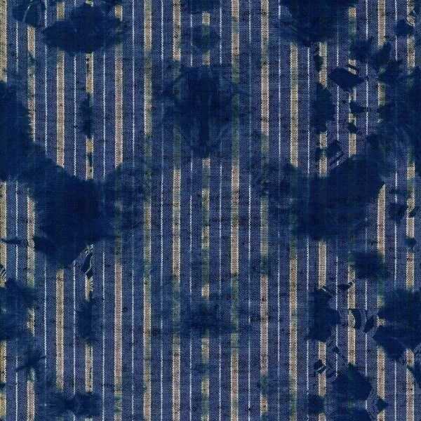 The Washed Shibori panel features an artisanal piece of work inspired by tie-dye techniques. The textile that is illustrated on it appears with stripes of different sizes, alligned in an orderly fashion. The whole surface also wears the traces of the resists on a grand scale, making the colourful fabric pattern appear.