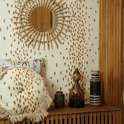 For the love of animals, Poodle and Blonde was inspired by the spotted coat of Dalmatians to design the Tottenham Dalmatian wallpaper. This design illustrates coloured spots on a light background. Perfectly integrated into interiors, this wall ornament is available in soft and dark tones.