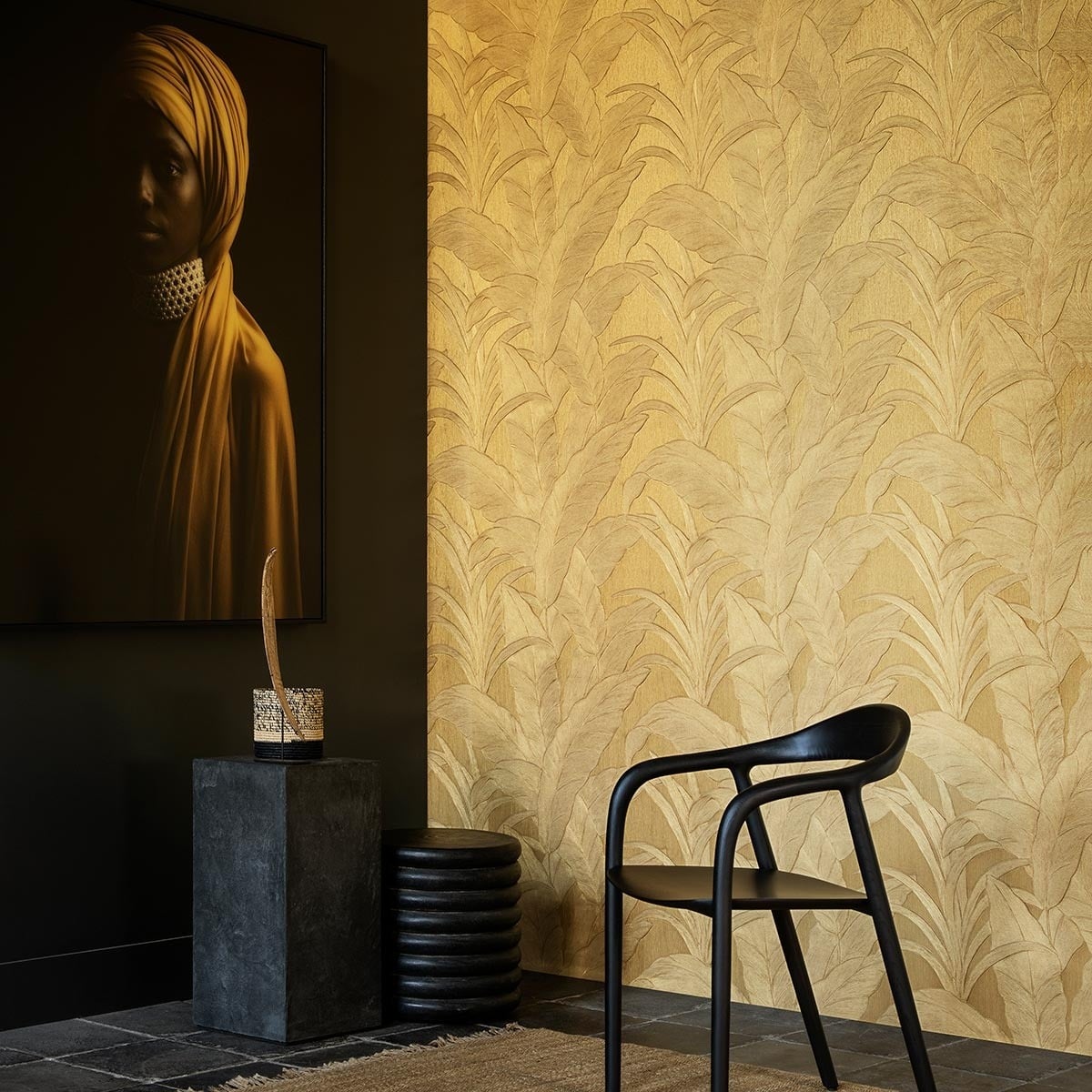 Arte uses the banana leaf to create its Musa wallpaper pattern. Slightly raised, the drawings transport us to a tropical setting. The metallic shiny finish brings a luxurious side to this simple and natural decor.
