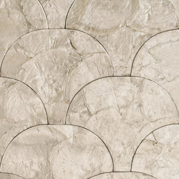 Evoking the appearance of scales, the abstract pattern of the Camber wallcovering features wide arches made with Capiz shells. These shells give a subtle shine to the support, which comes in a variety of colors. This wall decoration by Arte brings a refreshing atmosphere to living spaces.