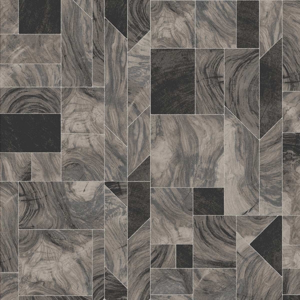The Theila wallpaper has the appearance of a stained glass window, with geometric figures of different tones and delimited by visible lines. This creation imitates the look of marble, with details that are clearly noticeable. Waves of light shades flow across the surface, giving an authentic look to the piece. This wall decor from Masureel brings dynamics and warmth to any interior.