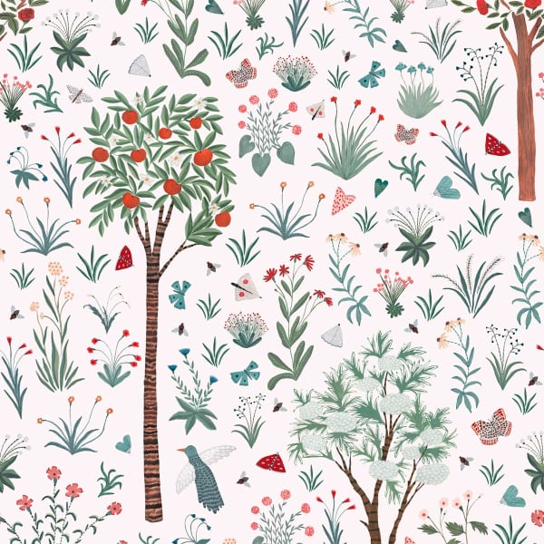 Inspired by medieval tapestries, the pattern of the panel Millefleurs Spring presents a naive and delicate visual. Originally drawn in watercolor and gouache, plant elements and animals colored in soft tones take place on a light background. Edited by Bien Fait, this creation diffuses a spring air to living spaces.
