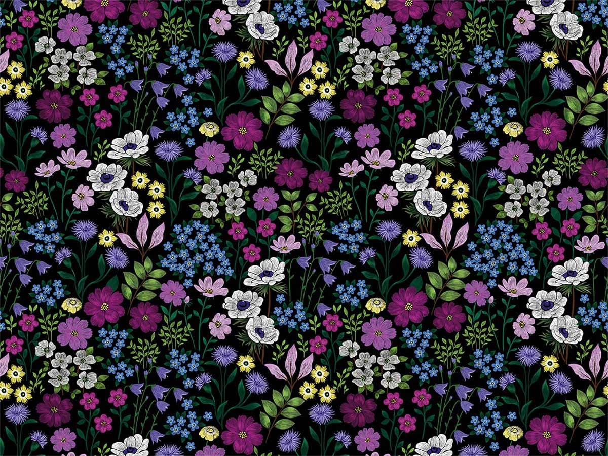 The Fleurs des Champs Alix panoramic wallpaper by Koziel will enchant any interior. This floral masterpiece presents a summer nightscape, where a garden blooms with an exquisite variety of flowers. The brilliantly poetic design gives sumptuous detail to each element. Made in France, this wallpaper captures the essence of nature in cool blue hues, bringing the flowers to life against a dark background.
