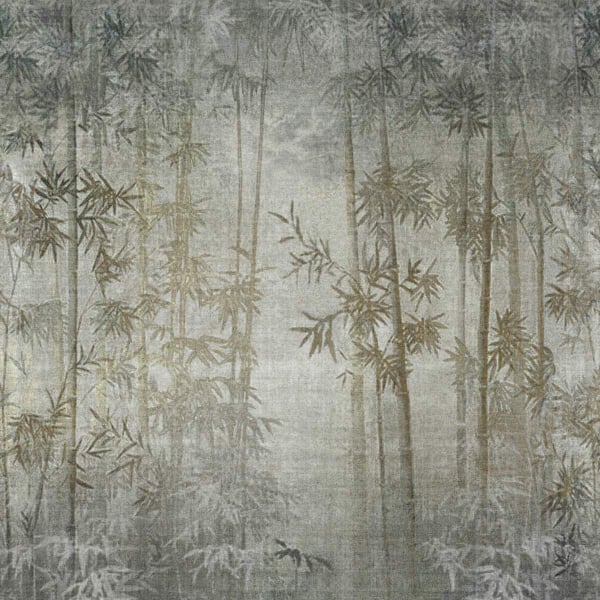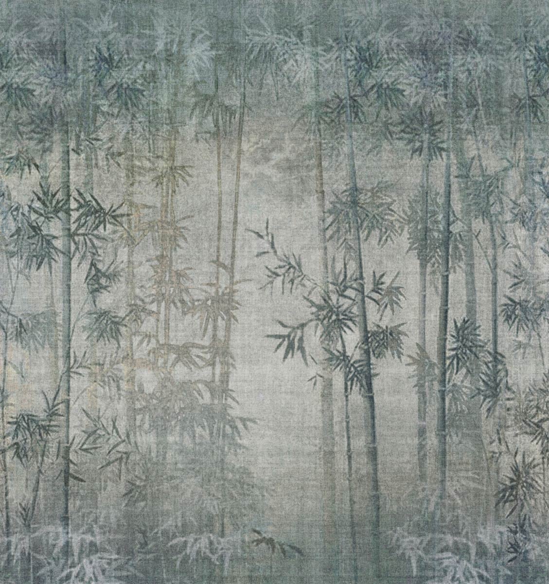 Sound of Silence, a wallpaper by Wall & Deco, illustrates a bamboo grove designed by Lorenzo de Grandis. The motif cultivates a sense of mystery with its bamboo silhouettes shrouded in mist. It imbues the walls with its intriguing charm, just like its depth and masterly silence. A light wind suddenly whispers. The leaves stir gracefully, lulling the interiors with their rustle.