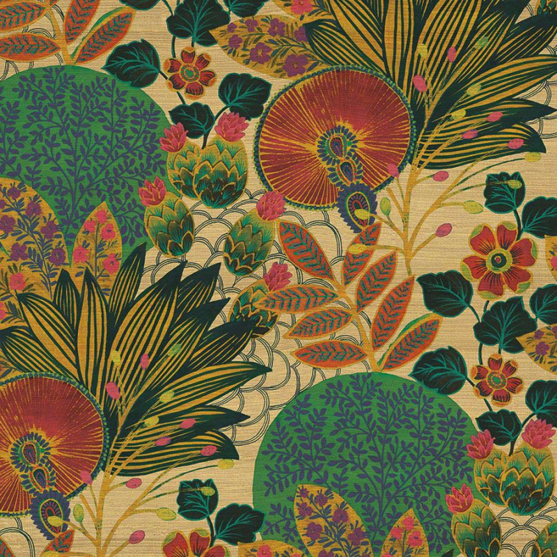 Jannelli&Volpi's Lithops wallcovering reveals an enchanting tangle of exotic leaves and flowers, like a suspended garden at the heart of the walls. Its designs, sketched on a golden flamed silk base, weave a visual and tactile poetry. A nod to both traditional and modern printing techniques, this piece lends artistic depth to the space.
