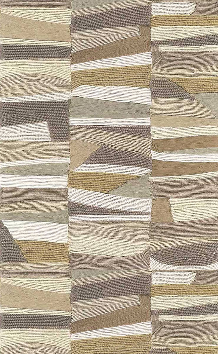 The colourful geometric pattern of Eijffinger wallpaper Layered Geometry is inspired by the 70s. Its vertical stripes are adorned with a profusion of irregular geometric figures interlocked with one another like laminated layers. This retro design completes the décor with a dynamic, nostalgic touch.