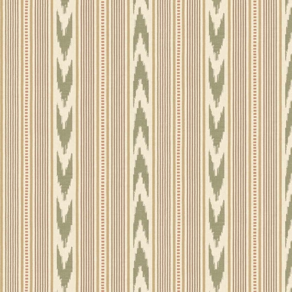 Mulberry combines regular stripes and ikat chevrons in the graphic pattern of Newport Stripe wallpaper. The lines are alternated with dotted lines and V shapes, all in a vertical movement. Varied in this way, the figures accentuate the height of the walls with visual balance. The warm effect of the textured backing, inspired by traditional cotton fabrics, makes this a classic design revisited.