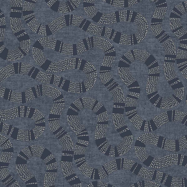 Ophidia brings the splendor of ancient relics and handmade creations to the walls. Serpentine lines, punctuated by a constellation of small dots here and there, cross this wallpaper by York Wallcoverings. The whole is revealed in a palette of muted and earthy shades.
