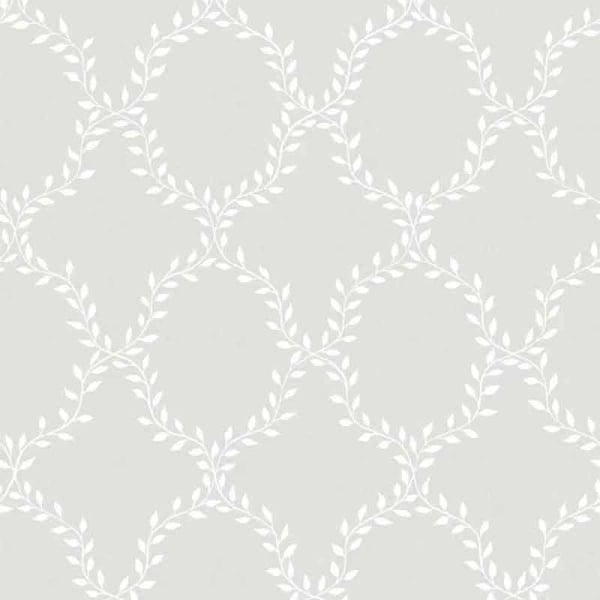 Wilma, a wallpaper proposed by Sandberg, features a plant and geometric pattern reminiscent of laurel wreaths. Garlands with slender stems, adorned with leaves pointing upwards, trace intertwined diamonds in measured arabesques. The composition unfolds a steady rhythm, imbued with calm and harmony.