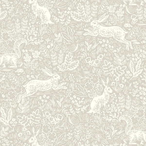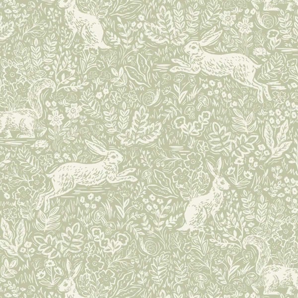 A plant and animal motif, rich in forest creatures, adorns the Fable wallpaper. Leaping hares and squirrels slip through the foliage of a dense composition. The fine and delicate lines reinforce the artisanal softness of the decor. This pattern, designed by Rifle Paper Co., evokes a dream world inspired by timeless tales.