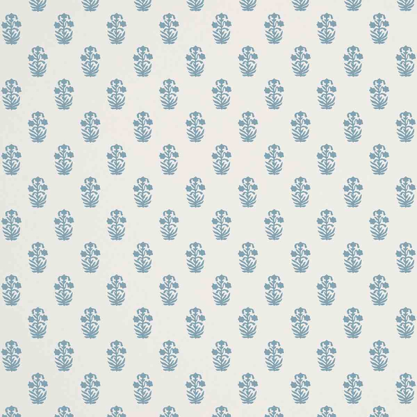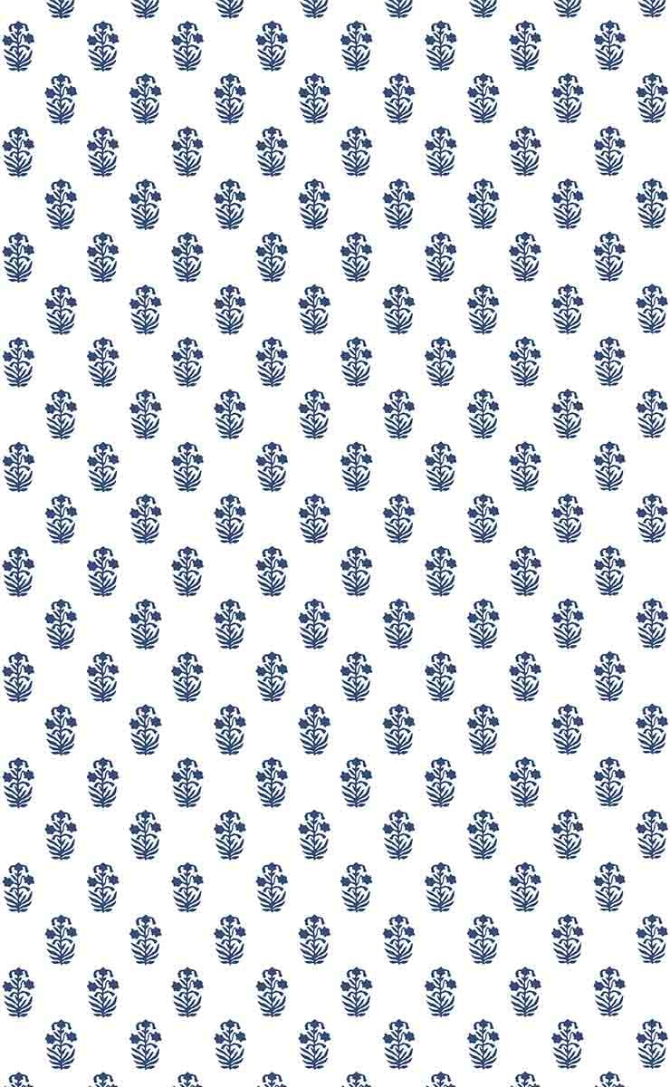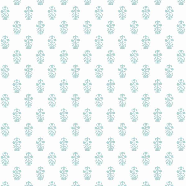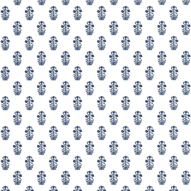 Corwin features a small blue floral pattern inspired by the calicoes imported by Captain George Corwin in the days of the East India Company. On a natural white background, the bouquets stand out in regular rows that structure the space. Screen-printed, this timeless wallpaper by Thibaut seduces with the finesse of its lines and the balance of its composition. It gives the walls a soft and refined presence.