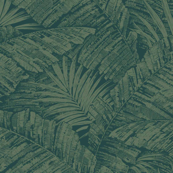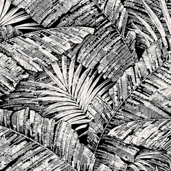 Le papier peint Palm Cove Toile affiche un motif botanique dense, composé de larges palmes finement entrelacées. Chaque feuille se distingue par un tracé précis en hachures, inspiré des codes de la gravure ancienne. Les nervures prennent vie dans un jeu subtil d’ombres et de lumière, donnant rythme et profondeur à l’ensemble. York Wallcoverings propose ici une interpretation artisanale de la jungle, à la fois structurée et graphique.