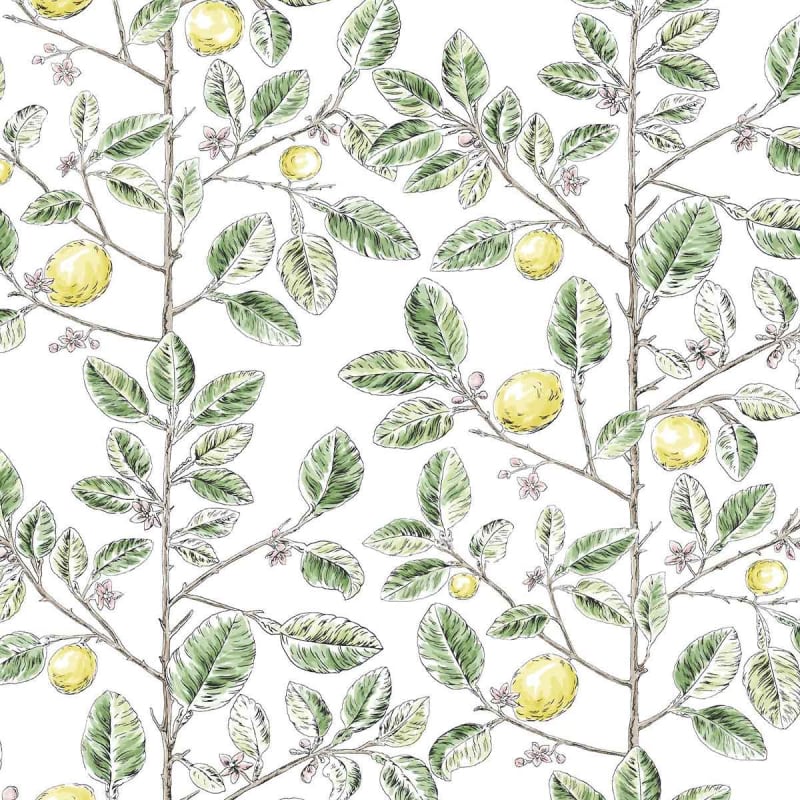 Limoncello Toile présente branches sinueuses, ponctuées de fruits ronds et de fleurs délicates. Ce papier peint révèle un motif botanique dessiné à la main, aux tracés fins et équilibrés. Chaque détail évoque la légèreté d’une planche d’herbier, avec ses feuillages texturés et ses citronniers en floraison. York Wallcoverings compose ici une scène inspirée d’un verger méditerranéen ordonné.