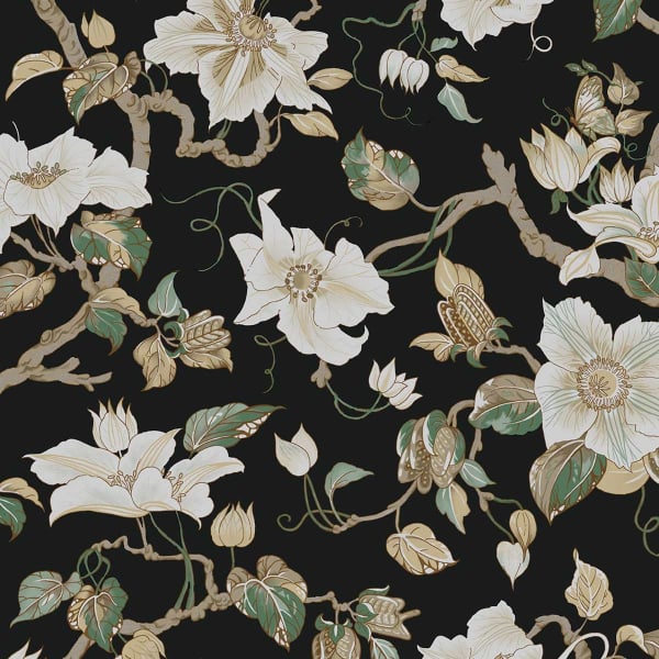 A stylized floral pattern extends over the Marguerite wallpaper, by York Wallcoverings. Sinuous stems traverse the decor, bearing large, blooming flowers with carefully striated petals. In a masterful composition, the graphic work matches the curved lines of the foliage. York Wallcoverings reveals a design full of plant poetry, between dream and memory.