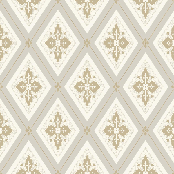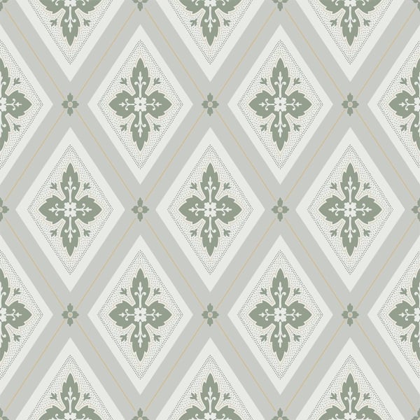 Astrid Flora unfolds an elegant rhythm of diamonds encasing stylized plant ornaments. This wallpaper by Düro features a geometric decoration inspired by damask, with softened arabesques with traditional accents. The symmetrical grid, underlined by fine dotted lines, comes alive with floral intersections that add depth to the design.