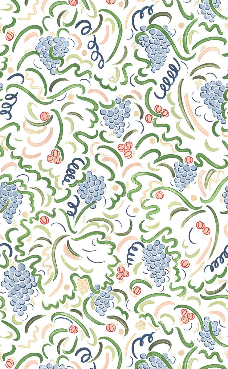 The La Vigne wallpaper, designed by Claire de Quénetain for Isidore Leroy, features a plant motif inspired by the vine. Stylized clusters intertwine with swirling leaves and tendrils, while small berries enrich the composition. The almost calligraphic design is distinguished by soft, dynamic curves that subtly animate the whole.