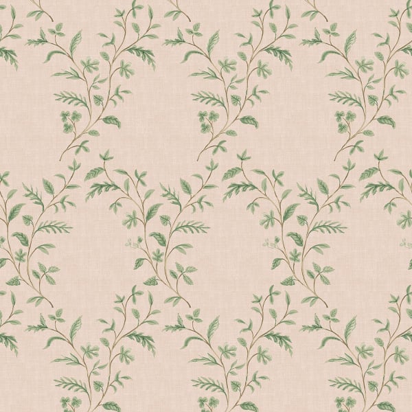 Hollingbourne Trellis is a wallpaper with a plant trellis pattern designed by Nina Campbell. Fine stems stand in delicate arabesques in a rhythmic and fluid composition. Punctuated by leaves with a varied layout, the branches are freely drawn and form flexible vertical lines. Each element balances gracefully in an aerial network reminiscent of a stylized climbing garden.