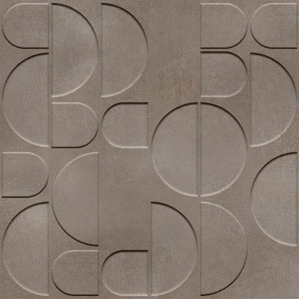 The square Adagio panel displays a geometric writing with curved and straight forms. This wooden wall covering plays with semicircles, segments and solids, precisely engraved by Inkiostro Bianco. The design composes a rhythmic and musical surface, where each line follows a silent measure. The texture captures the light and reveals a graphic and warm relief.