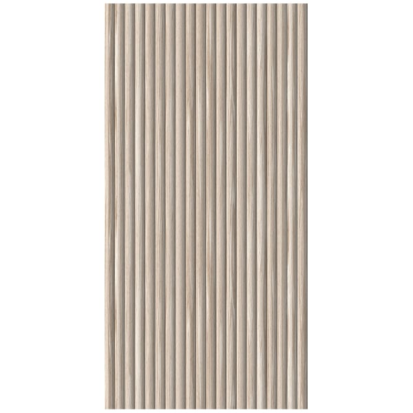 Through a geometric pattern of vertical lines, the Canneto panel expresses a sculptural elegance. Grooved wooden slats, arranged with regularity, structure the wall covering. Each strip reveals a natural texture, resulting from precise laser engraving. Inkiostro Bianco develops a refined graphic language, which creates a sophisticated effect of depth.