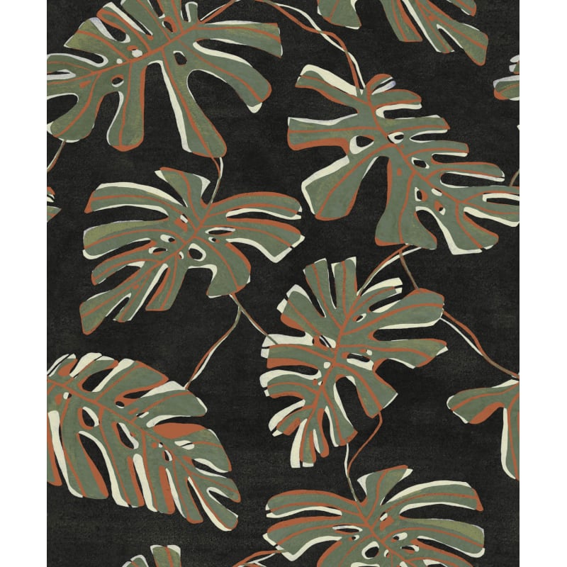 On this Monstera wallpaper, large stylized monstera leaves stretch out softly over a dense, deep background. The plant motif plays with solids and voids, sharp contours and worked flat areas, creating a soothing visual rhythm. Each silhouette seems suspended in space, as if floating between light and shadow. Tres Tintas Barcelona offers a free, generous and fluid interpretation of nature.