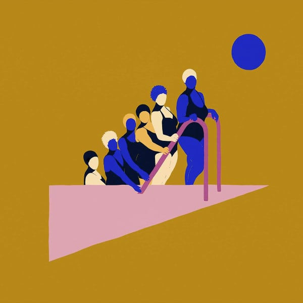 The Equilibrio wallpaper displays a group of swimmers frozen in a calm wait, as if caught between two eras. The figurative pattern shows silhouettes lined up on a diving board with geometric shapes. It suggests a collective memory, a shared memory of lasting friendships. This Coordonné wallpaper plays on the strength of the colored areas and the simplicity of the design.