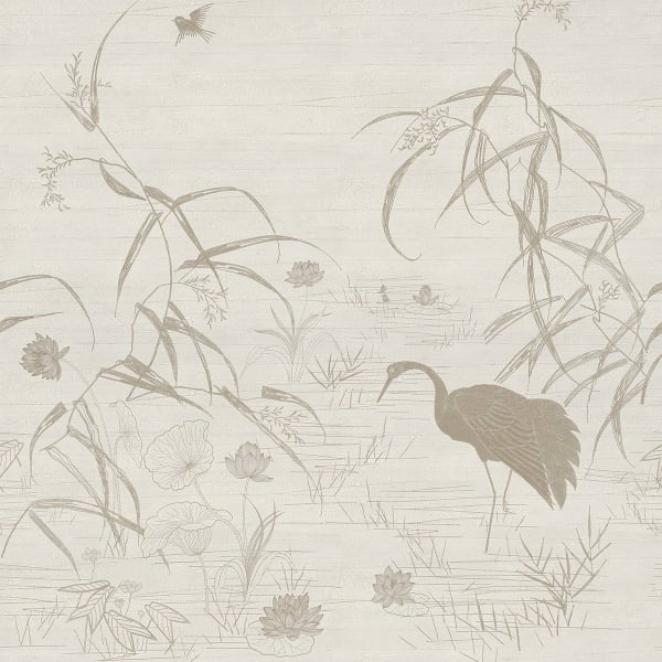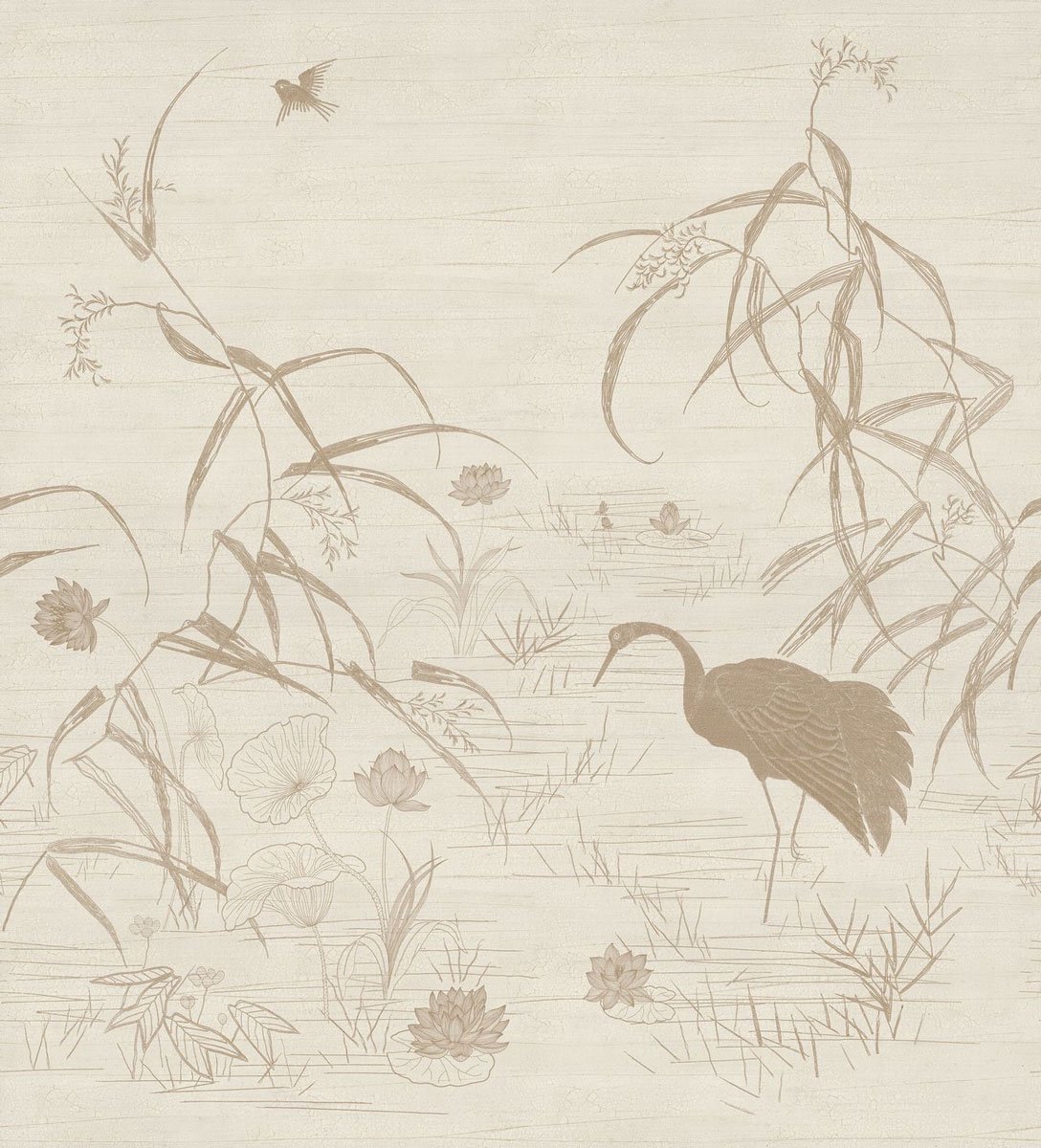 Le papier peint panoramique Nuido retranscrit une scène poétique, dessinée avec minutie. Le motif paysager s’inspire d’une archive brodée de soie, réalisée selon la technique ancestrale japonaise du nuido. L’atmosphère, sereine et silencieuse, exprime l’accord subtil entre l’humain et la nature. Chaque élément, suspendu dans le temps, révèle le regard sensible de Casamance.