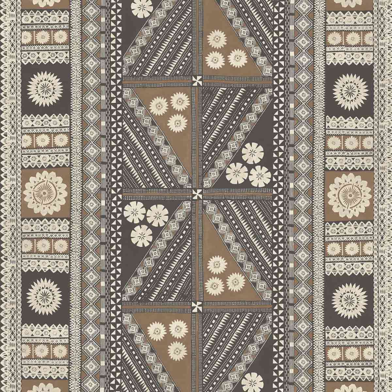 The Tapa mural wallpaper by York Wallcoverings borrows its sophisticated beauty from handcrafted tapestries. Floral figures and geometric designs merge here in a graphic composition tinged with fantasy. Its palette, mixing muted and delicate shades, envelops the space in a hushed harmony, between dreamy tradition and understated modernity.